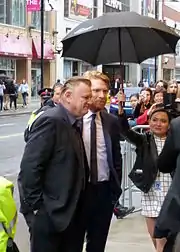 In 2003, Gleeson was the voice of Hugh the Miller in an episode of the Channel 4 animated series Wilde Stories.[9] While Gleeson portrayed Irish statesman Michael Collins in The Treaty, he later portrayed Collins' close collaborator Liam Tobin in the film Michael Collins with Liam Neeson taking the role of Collins.[10] Gleeson later went on to portray Winston Churchill in Into the Storm. Gleeson won an Emmy Award for his performance. Gleeson played Barty Crouch Jr impersonating Hogwarts professor Mad-Eye Moody in the fourth, and Alastor Moody himself in fifth and seventh Harry Potter films. His son Domhnall played Bill Weasley in the seventh and eighth films.