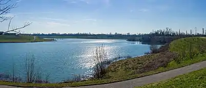 Brescia is located in the north-western section of the Po Valley, at the foot of the Brescian Prealps, between the Mella and the Naviglio, with the Lake Iseo to the west and the Lake Garda to the east (but it has also other important lakes like Idro and Moro[19]). The southern area of the city is flat, while towards the north the territory becomes hilly. The city's lowest point is 104 metres (341 ft) above sea level, the highest point is Monte Maddalena at 874 metres (2,867 ft), while the centre of the town is 149 metres (489 ft). The administrative comune covers a total area of 90.3 square kilometres (34.9 sq mi).