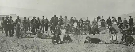 The degree of Young's involvement in the Mountain Meadows Massacre, which took place in Washington County in 1857, is disputed.[145] Leonard J. Arrington reports that Young received a rider at his office on the day of the massacre, and that when he learned of the contemplated attack by members of the church in Parowan and Cedar City, he sent back a letter directing that the Fancher party be allowed to pass through the territory unmolested.[146] Young's letter reportedly arrived on September 13, 1857, two days after the massacre. As governor, Young had promised the federal government he would protect migrants passing through Utah Territory, but over 120 men, women, and children were killed in this incident. There is no debate concerning the involvement of individual Mormons from the surrounding communities by scholars. Only children under the age of seven, who were cared for by local Mormon families, survived, and the murdered members of the wagon train were left unburied. The remains of about 40 people were later found and buried, and U.S. Army officer James Henry Carleton had a large cross made from local trees, the transverse beam bearing the engraving, "Vengeance Is Mine, Saith The Lord: I Will Repay" and erected a cairn of rocks at the site. A large slab of granite was put up on which he had the following words engraved: "Here 120 men, women and children were massacred in cold blood early in September, 1857. They were from Arkansas." For two years, the monument stood as a memorial to those traveling the Spanish Trail through Mountain Meadow. According to Wilford Woodruff, Young brought an entourage to Mountain Meadows in 1861 and suggested that the monument instead read "Vengeance is mine and I have taken a little".[147]