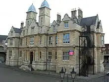 In 1845 the B&ER built its own station at right angles to the GWR station and an "express platform" on the curve linking the two lines so that through trains no longer had to reverse. The wooden B&ER station was known locally as "The Cowshed";[10] but a grand headquarters was built at street level on the west side of its station in 1852–54 to the Jacobean designs of Samuel Fripp.[9] The Bristol and Portishead Pier and Railway opened a branch off the Bristol and Exeter line west of the city on 18 April 1867, the trains being operated by the B&ER and using its platforms at Temple Meads.[13]