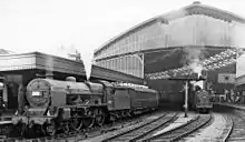 Trains on the Bristol and South Wales Union and the Midland routes operated from the terminal platforms, while the GWR used the new through platforms.[10] The capital costs of the new work were split 4/14 GWR/B&ER and 10/14 MR, and operating costs were split GWR 3/8, MR 3/8 and B&ER 2/8. Hence, when the GWR absorbed the B&ER in 1876 the split became GWR 5/8 and MR (later LMS) 3/8, until nationalisation on 1 January 1948.[19]