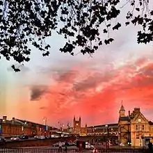 Bristol Temple Meads is the oldest and largest railway station in Bristol, England. It is located 118 miles 31 chains (118.39 mi; 190.5 km) away from London Paddington.[2] It is an important transport hub for public transport in the city; there are bus services to many parts of the city and surrounding districts, with a ferry to the city centre. Bristol's other major station, Bristol Parkway, is a more recent station on the northern outskirts of the conurbation.