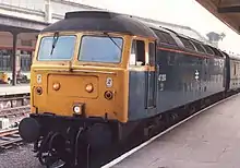 The locomotives, bar a batch of 81 built for freight duties, were all fitted with steam heating boilers for train heat duties. The initial batch of twenty, plus D1960 and D1961, were also fitted with electric train heating (ETH).[11] With this type of heating becoming standard, a further large number of locomotives were later fitted with this equipment.