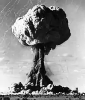 On 3 October 1952 the United Kingdom tested its first nuclear weapon in Operation Hurricane in the Montebello Islands off the coast of Western Australia.[14] A year later the first nuclear tests on the Australian mainland were carried out in Operation Totem at Emu Field in the Great Victoria Desert in South Australia, with a detonation on 15 October and a second two weeks later on 27 October.[15] The Australian Minister for Supply, Howard Beale, stated in 1955 that "England has the know how; we have the open spaces, much technical skill and a great willingness to help the Motherland. Between us we should help to build the defences of the free world, and make historic advances in harnessing the forces of nature."[16]