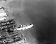 The first ship was the SS James M. Wayne (named after James Moore Wayne), whose keel was laid on July 6, 1942, and which was launched on March 13, 1943.[39] The last ship was the SS Coastal Ranger, whose keel was laid on June 7, 1945, and which was launched on August 25, 1945.[39] The first six ships took 305 to 331 days each to complete,[39] but soon production ramped up and most of the remaining ships were built in about two months, bringing the average down to 89 days each. By November 1943, about four ships were launched per month. The SS William F. Jerman was completed in only 34 days in November and December 1944.[39] Six ships could be under construction in slipways at one time.[40]