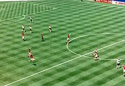 Bulgaria continued to the round of 16, where they faced Mexico. Stoichkov opened the scoring in the sixth minute with an incredible strike off a break away from outside the box, tallying his fourth goal. The match ended 1–1 and after no goals were scored in extra time, penalties decided which team would go through. Team captain Borislav Mihaylov saved the first three penalty kicks in a row, breaking the World Cup record. Bulgaria won 3–1 on penalties. In the quarter-finals, Bulgaria faced the defending world champions Germany. At the start of the match held in Giants Stadium in East Rutherford, New Jersey, the Bulgarians dominated impressively, hitting the post twice in the process, but eventually found themselves behind after Lothar Matthäus scored the opening goal for the Germans. The Bulgarians, however, managed to turn the game over with a swerving free kick by Hristo Stoichkov and a flying header by Yordan Lechkov, giving them a 2–1 win. In the semi-finals, they controversially lost 2–1 to Italy. Stoichkov scored Bulgaria's only goal in the first half to tally his seventh goal, which led the tournament. In the second half, Bulgaria were waved off on a non-penalty call in which an Italian defender had clearly committed a handball in the box, off a Kostadinov cross. Instead of playing in the final, it became a third place play-off. Bulgaria lost against Sweden 4–0, but the fourth-place finish was Bulgaria's best performance in history to that point.