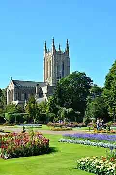 Bury St Edmunds (/ˈbɛri sənt ˈɛdməndz/), commonly referred to locally as Bury, is a historic market and cathedral town and civil parish in Suffolk, England.[2] The town is best known for Bury St Edmunds Abbey and St Edmundsbury Cathedral. Bury is the seat of the Diocese of St Edmundsbury and Ipswich of the Church of England, with the episcopal see at St Edmundsbury Cathedral.
