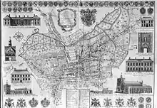 An archaeological study in the 2010s on the outskirts of Bury St Edmunds (Beodericsworth, Bedrichesworth, St Edmund's Bury) uncovered evidence of Bronze Age activity in the area. The dig also uncovered Roman coins from the first and second centuries.[9] Samuel Lewis, writing in 1848, notes the earlier discovery of Roman antiquities, and as with several other writers connects Bury St Edmunds with Villa Faustini or Villa Faustina, although the location of this Roman site is also discussed by E. Gillingwater (1804), who notes the lack of evidence for it being here.[10][11][12]