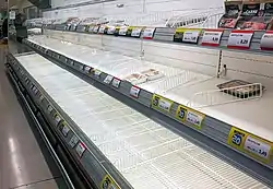 Supermarkets in Lombardy and Emilia-Romagna were emptied by customers as residents stockpiled food and supplies.[71][72][73] Streets, parks and train stations in multiple cities in Lombardy were left deserted.[74][75]