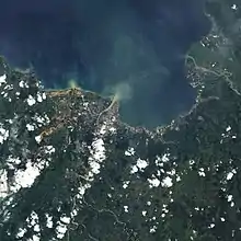 Cagayan de Oro is located along the north central coast of Mindanao island facing Macajalar Bay and is bordered by the municipalities of Opol to the west, Tagoloan to the east, and the provinces of Bukidnon and Lanao del Norte to the south of the city. According to the 2020 census, the city has a population of 728,402, making it the 10th most populous city in the Philippines.[10]