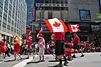 From top, left to right: Canada Day Fireworks display on Parliament Hill, in Ottawa, Ontario; a young woman celebrates Canada Day in Toronto, Ontario; a Canada Day parade in Montreal, Quebec; a member of Canada's First Nations with a national flag and Royal Union Flag at Canada Day celebrations in Calgary, Alberta | |