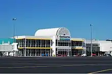In early December 2007, plans were announced to construct a new terminal, to be completed by September 2010.[17] This new terminal would have increased the number of aerobridges from two to six, doubled the number of check in counters and car parking and provided additional baggage processing capacity and lounge space.[18][19] These plans were placed on hold in late 2008 as a result of the global economic crisis.[14]