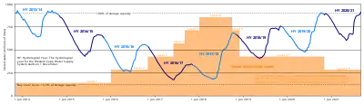 | Water levels as a percentage of total dam capacity by year.[23] | |||||||||