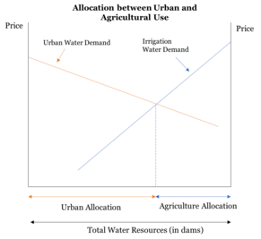 Water restrictions were imposed on both agricultural and urban use of municipal water. On average, the agriculture sector in the Western Cape has had to cut its water use by 60 percent since 2017. Water restrictions varied from 50 percent in the Breede Valley, 60 percent in the Berg River and Riviersonderend region and 87 percent in the Lower Olifants River Valley.[16] At Level 6B water restrictions, urban areas were expected to cut their water consumption by 45 percent. Anton Rabe, CEO of Hortgro, which represents deciduous fruit growers in Cape Town, argued that the cut of 60 percent to agriculture, compared with 45 percent to the city, was unfair.[109] However, there were also sensational news and vlogs which blamed the water crisis on water inefficient agricultural and livestock farming methods.[56] Optimal allocation of water between agricultural and urban use is particularly complicated due to the presence of multiple externalities, with irrigated water being crucial for food security and urban use for public health, as well as the seasonal changes in demand.