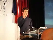 At the 2010 San Diego Comic-Con International, some footage that had been shot in the previous week was shown at the San Diego Convention Center.[21] The first television advertisement aired during Super Bowl XLV on the Fox network in the United States. Paramount paid $3 million to run the 30-second advertisement.[110] The first full trailer was released in March 2011.[111] In May 2011, the USO girls from the film performed aboard the USS Intrepid at the Intrepid Sea-Air-Space Museum as a part of the 2011 Fleet Week celebration in New York City.[112] In June 2011, Dunkin' Donuts and Baskin-Robbins teamed with Marvel to search for real-life super-soldiers. The contest sought nominations for veterans or active U.S. servicepersons making a difference where they live or serve.[113] In July 2011, Paramount Pictures promoted the film during an Independence Day celebration hosted by the Chicago White Sox.[114] Promotional partners include Harley-Davidson, Dunkin' Donuts and Baskin-Robbins.[115]