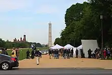 Filming in Cleveland began on May 17 and was scheduled to last until mid-June with locations scheduled on the West Shoreway, the Southerly Wastewater Treatment Plant in Cuyahoga Heights and the Lakeview Cemetery Dam.[114] Cleveland was chosen as a stand-in for Washington, D.C, with the city's East 6th Street doubling as 7th and D Streets in Southwest D.C.[115] Other locations in Cleveland included the Federal Reserve Bank of Cleveland, the Cleveland Public Library, Cleveland State University, the Cleveland Arcade, Tower City Center, the Cleveland Museum of Art, and the Western Reserve Historical Society.[115][116][117][118][119] Interior shots were also filmed inside private homes and the Pilgrim Congregational Church in Tremont.[120] Filming in Cleveland concluded on June 27, 2013.[121]