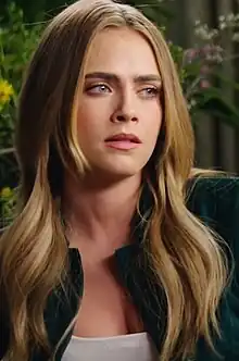 Delevingne went on to play the part of Melanie in the British psychological thriller film The Face of an Angel, accompanied by Daniel Brühl and Kate Beckinsale.[41] The film received mixed reviews, but many critics commended Delevingne's performance. One such example is The Metro which commented that, "In her first major film role, she proves she can act with a sweet and playful on-screen presence. She brings a sense of vitality that is desperately missing from the rest of the film."[42]