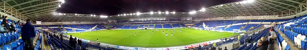 The stadium was completed several weeks ahead of schedule and was officially opened with a pre-season friendly against Celtic on 22 July 2009, which ended in a 0–0 draw.[36][37] There were two games played in the stadium prior to this: a Cardiff City Legends game on 4 July,[10] and a friendly against Chasetown on 10 July. The first league game was played on 8 August 2009, a 4–0 win for Cardiff against Scunthorpe United.