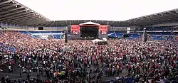 Stereophonics headlined the first gig at the stadium on 5 June 2010, having already played a record-breaking 13 previous sell-out shows at the Cardiff International Arena, as well as at the Millennium Stadium and Cardiff Castle.[49] The concert, known as Summer in the City, was supported by Kids In Glass Houses and Doves. Elton John performed at the stadium in June 2019.