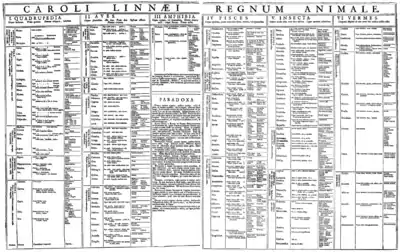 Since the initial release of Systema Naturae in 1735, the book had been expanded and reprinted several times; the tenth edition was released in 1758. This edition established itself as the starting point for zoological nomenclature, the equivalent of Species Plantarum.[112][117]