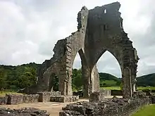 With its strategic location and history, the county is rich in archaeological remains such as forts, earthworks and standing stones. Carn Goch is one of the most impressive Iron Age forts and stands on a hilltop near Llandeilo.[33] The Bronze Age is represented by chambered cairns and standing stones on Mynydd Llangyndeyrn, near Llangyndeyrn.[34] Castles that can be easily accessed include Carreg Cennen, Dinefwr, Kidwelly, Laugharne, Llansteffan and Newcastle Emlyn Castle. There are the ruinous remains of Talley Abbey, and the coastal village of Laugharne is for ever associated with Dylan Thomas. Stately homes in the county include Aberglasney House and Gardens, Golden Grove and Newton House.[35]