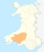 - List of places in Carmarthenshire for an alphabetical list of towns and villages.