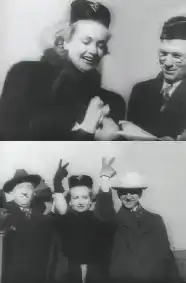 Lombard was born in Fort Wayne, Indiana on October 6, 1908, at 704 Rockhill Street.[1] Christened Jane Alice Peters, she was the third child and only daughter of Frederic Christian Peters (1875–1935) and Elizabeth Jayne "Bessie" (Knight) Peters (1876–1942). Her two older brothers, with whom she was close all her life, were Frederic Charles (1902–1979) and John Stuart (1906–1956).[2] Lombard's parents both came from wealthy families and biographer Robert Matzen called her early years her "silver spoon period".[3] Her parents' marriage was strained,[4] and in October 1914, her mother took the children and moved to Los Angeles.[5] Although the couple did not divorce, the separation was permanent.[4] Her father's continued financial support allowed the family to live comfortably, and they settled into an apartment near Venice Boulevard.[6]
