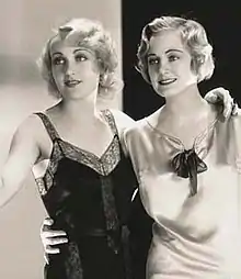 Sennett's productions were distributed by Pathé Exchange, and the company began casting Lombard in feature films. She had prominent roles in Show Folks and Ned McCobb's Daughter (both 1928),[28] and reviewers observed that she made a "good impression" and was "worth watching".[29] The following year, Pathé elevated Lombard to a leading lady.[30] Her success in Raoul Walsh's picture Me, Gangster (also 1928), with June Collyer and Don Terry in his film debut, finally eased the pressure that her family had been exerting for her to succeed.[31] In Howard Higgin's High Voltage (1929), Lombard's first sound film, she played a criminal in the custody of a deputy sheriff, both of whom are among bus passengers stranded in deep snow.[32] Her next film, the comedy Big News (1929), cast her with Robert Armstrong and was a critical and commercial success.[33] Lombard was reunited with Armstrong for the crime drama The Racketeer, released in late 1929. The review in Film Daily wrote: "Carol Lombard proves a real surprise, and does her best work to date. In fact, this is the first opportunity she has had to prove that she has the stuff to go over."[34]