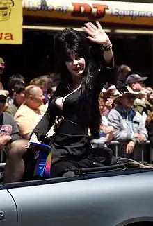 Cassandra Peterson[1] (born September 17, 1951) is an American actress and former go-go dancer and showgirl. She is best known for her portrayal of the horror hostess character Elvira, Mistress of the Dark. Peterson gained fame on Los Angeles television station KHJ-TV in her stage persona as Elvira, hosting Elvira's Movie Macabre, a weekly B movie presentation. A member of the Los Angeles-based improvisational and sketch comedy troupe The Groundlings, Peterson based her Elvira persona in part on a "Valley girl"-type character she created while a member of the troupe.