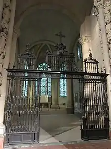 A month after the choir's consecration, the trustees suddenly fired LaFarge, commissioning Ralph Adams Cram to take LaFarge's place as lead architect of St. John's.[108][109][110] The trustees had exercised a clause in their contract with Heins & LaFarge, enabling them to hire another architect if either partner were to die.[58] LaFarge was not made aware of the matter beforehand, and was only notified via a cable sent by his partner Benjamin Wistar Morris.[109][110] The original Byzantine-Romanesque design was changed to a Gothic design, and Cram was asked to convert many existing features to Gothic style.[111][112][113][114] The move was criticized in the local media,[109] who claimed that the trustees and Cram had been conspiring to eject LaFarge from the lead architect position.[81][115] However, The New York Sun reported that Cram had only reluctantly accepted the commission because the trustees had threatened to hire a foreign architect otherwise.[112]