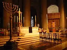 On April 14, 2019, a small fire occurred in the crypt; except for smoke damage, the cathedral building was mostly unaffected.[205][206] Many artworks stored in the crypt were reportedly damaged or destroyed in the fire. An initial cleaning removed smoke damage from the bottom 10 feet of the interior of the cathedral.[207] A cleaning of the rest of the interior was also ongoing.[208] Ennead Architects proposed erecting a copper dome above the crossing so that the crossing's tiles could be rehabilitated.[209][210] The restoration of the dome was completed in 2022.[211]