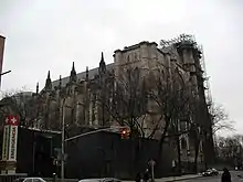 The cathedral's main building was made a city landmark in June 2003, but the designation was overturned that October, since it did not cover the entire cathedral close.[198] At the same time, St. John's officials wanted to lease out the lots at the northern and southern borders of the cathedral close for further development, a move that preservationists unsuccessfully attempted to prevent.[199] Ultimately, two residential buildings were erected on these lots: Avalon Morningside Park on the southern lot and the Enclave[200] on the northern lot.[201][202] In 2017, the cathedral close was re-designated a city landmark, except for the two new residential buildings.[203] The next year, the first phase of the north transept's renovation was finally completed,[78] and work began on a renovation of the crypt.[204]