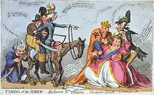 Sophie found her childhood to be quite uneventful; she once wrote to her correspondent Baron Grimm, "I see nothing of interest in it".[5] Although Sophie was born a princess, her family had very little money; her rise to power was supported by her mother Joanna's wealthy relatives, who were both nobles and royal relations.[3] The more than 300 sovereign entities of the Holy Roman Empire, many of them quite small and powerless, made for a highly competitive political system in which the various princely families fought for advantages over one another, often by way of political marriages.[6]