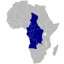 Central Africa is a subregion of the African continent comprising various countries according to different definitions. Middle Africa is an analogous term used by the United Nations in its geoscheme for Africa and consists of the following countries: Angola, Burundi, Cameroon, Central African Republic, Chad, Democratic Republic of the Congo, Republic of the Congo, Equatorial Guinea, Gabon, Rwanda, and São Tomé and Príncipe.[1] These eleven countries are members of the Economic Community of Central African States (ECCAS).[1] Six of those countries (Cameroon, Central African Republic, Chad, Equatorial Guinea, Gabon, and Republic of the Congo) are also members of the Economic and Monetary Community of Central Africa (CEMAC) and share a common currency, the Central African CFA franc.[2]