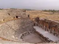 The picturisation of the song "Devuda Devuda" focused on a variety of professions, especially janitors, sewage cleaners, farmers and washer folk.[33] According to Ramji, who helped the production unit look for locations for the song "Konjam Neram", Ramkumar Ganesan and Vasu chose Turkey, making Chandramukhi the first Tamil film to be shot there.[34] The production unit flew to Istanbul from Chennai via Dubai on 25 February 2005.[34] The filming of the song was completed after the audio launch.[35] "Konjam Neram" was shot in segments in Ephesus and Pamukkale. Shooting in Ephesus took six hours. The segment in Pamukkale was filmed in an amphitheatre in the ancient city of Hierapolis, which is located close to Pamukkale. The last segment was shot in the Cappadocia region, a 10-hour drive by bus from Istanbul.[35] "Raa Raa" was choreographed by Kala and took four days to be completed instead of the planned seven days.[36]