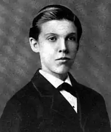Hughes's father, David Charles Hughes, immigrated to the United States from Wales in 1855 after he was inspired by The Autobiography of Benjamin Franklin. David became a Baptist preacher in Glens Falls, New York, and married Mary Catherine Connelly, whose family had been in the United States for several generations.[2] Charles Evans Hughes, the only child of David and Mary, was born in Glens Falls on April 11, 1862.[3][4] The Hughes family moved to Oswego, New York, in 1866, but relocated soon after to Newark, New Jersey, and then to Brooklyn. With the exception of a brief period of attendance at Newark High School, Hughes received no formal education until 1874, instead being educated by his parents. In September 1874, he enrolled in New York City's prestigious Public School 35, graduating the following year.[5]