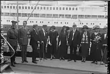 The Washington Naval Conference opened in November 1921, attended by five national delegations, and in the gallery by hundreds of reporters and dignitaries such as Chief Justice Taft and William Jennings Bryan. On the first day of the conference, Hughes unveiled his proposal to limit naval armaments. Hughes's ambitious proposal to scrap all US capital ships under construction stunned the delegates, as did his proposals for the Japanese and British Navies.[59] The British delegation, led by Arthur Balfour, supported the proposal, but the Japanese delegation, under the leadership of Katō Tomosaburō, asked for several modifications. Katō asked for the ratio to be adjusted to 10:10:7 and refused to destroy the Mutsu, a dreadnought that many Japanese saw as a symbol of national pride. Katō eventually relented on the naval ratios, but Hughes acquiesced to the retention of the Mutsu, leading to protests from British leaders. Hughes clinched an agreement after convincing Balfour to agree to limit the size of the Admiral-class battlecruisers despite objections from the British Navy. Hughes also won agreement on the Four-Power Treaty, which called for a peaceful resolution of territorial claims in the Pacific Ocean, as well as the Nine-Power Treaty, which guaranteed the territorial integrity of China. News of the success of the conference was warmly received around the world. Franklin D. Roosevelt later wrote that the conference "brought to the world the first important voluntary agreement for limitation and reduction of armament."[60]