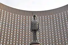 De Gaulle won a place at St Cyr in 1909. His class ranking was mediocre (119th out of 221 entrants), but he was relatively young and this was his first attempt at the exam.[10] Under a law of 21 March 1905, aspiring army officers were required to serve a year in the ranks, including time both as a private and as an NCO, before attending the academy. Accordingly, in October 1909, de Gaulle enlisted (for four years, as required, rather than the normal two-year term for conscripts) in the 33rd Infantry Regiment of the French Army, based at Arras.[12] This was a historic regiment with Austerlitz, Wagram, and Borodino amongst its battle honours.[13] In April 1910 he was promoted to corporal. His company commander declined to promote him to sergeant, the usual rank for a potential officer, commenting that the young man clearly felt that nothing less than Constable of France would be good enough for him.[14][12] He was eventually promoted to sergeant in September 1910.[15]
