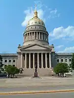 Although a state now existed, choosing a state capital location proved to be difficult. For several years, the West Virginia capital intermittently traveled between Wheeling and Charleston.[18] In 1877, however, the citizens voted on a permanent location. Charleston received 41,243 votes, Clarksburg received 29,442 and Martinsburg received 8,046; Wheeling was not considered. Charleston won, and eight years later the first state capitol building was opened there.[13]