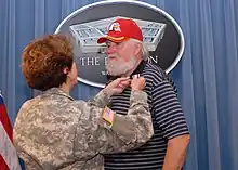 On October 18, 2005, Daniels was honored as a BMI Icon at the 53rd annual BMI Country Awards.[24] The following year, Daniels played in the backup band for Hank Williams Jr.'s opening sequence to Monday Night Football.[25] In November 2007, Daniels was invited to become a member of the Grand Ole Opry.[26] He was inducted during the January 19, 2008, edition of the Opry.[27] In 2009, Daniels was featured playing fiddle in a commercial for GEICO.[28]