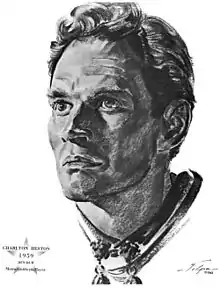 From the Winnetka Community Theatre (or the Winnetka Dramatist's Guild, as it was then known) in which he was active, he earned a drama scholarship to Northwestern University.[29][30] He attended college from 1941 to 1943 and among his acting teachers was Alvina Krause.[29] Several years later, Heston teamed up with Bradley to produce the first sound version of William Shakespeare's Julius Caesar, in which Heston played Mark Antony.[31]