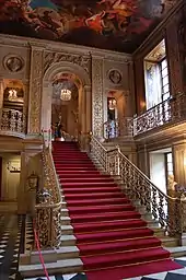 About the time Queen Victoria decided that Hampton Court, with state apartments in the same style, was uninhabitable, the 6th Duke wrote that he was tempted to demolish the State Apartments to make way for new bedrooms. However, sensitive to his family heritage, he left the rooms largely untouched, making additions rather than changing the existing spaces of the house. Changes to the main baroque interiors were restricted to details such as stamped leather hangings on the walls of the State Music Room and State Bedroom, and a wider, shallower, but less elegant staircase in the Painted Hall, which was itself later replaced. The contents of the State Apartments were rearranged in 2010 to reflect the way they had looked in the 17th and 18th centuries.[33]
