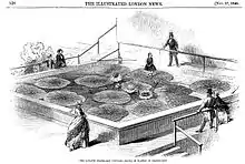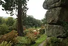 The name 'Chatsworth' is a corruption of Chetel's-worth, meaning "the Court of Chetel".[6] In the reign of Edward the Confessor, a man of Norse origin named Chetel held lands jointly with a Saxon named Leotnoth in three townships: Ednesoure to the west of the Derwent, and Langoleie and Chetesuorde to the east.[7] Chetel was deposed after the Norman Conquest, and in the Domesday Book of 1086 the Manor of Chetesuorde is listed as the property of the Crown in the custody of William de Peverel.[6] Chatsworth ceased to be a large estate, until the 15th century when it was acquired by the Leche family who owned property nearby. They enclosed the first park at Chatsworth and built a house on the high ground in what is now the south-eastern part of the garden. In 1549 they sold all their property in the area to Sir William Cavendish, Treasurer of the King's Chamber and the husband of Bess of Hardwick, who had persuaded him to sell his property in Suffolk and settle in her native county.