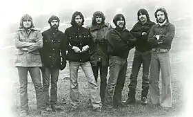 ![]() Chicago in 2004 (l–r): Howland, Pankow, Champlin, Parazaider, Imboden, Loughnane, Scheff, and Lamm (behind Scheff) | |