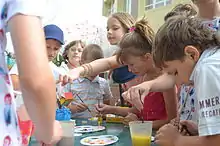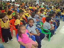 In September 2012, the Secretary-General Ban Ki-moon of the United Nations led the initiative for the education of children.[12] He firstly wants every child to be able to attend school, a goal by 2015.[12] Secondly, to improve the skill set acquired in these schools.[12] Finally, implementing policies regarding education to promote peace, respect, and environmental concern.[12] Universal Children's Day is not just a day to celebrate children for who they are, but to bring awareness to children around the globe that have experienced violence in forms of abuse, exploitation, and discrimination. Children are used as laborers in some countries, immersed in armed conflict, living on the streets, suffering by differences be it religion, minority issues, or disabilities.[13] Children feeling the effects of war can be displaced because of the armed conflict and may suffer physical and psychological trauma.[14] The following violations are described in the term "children and armed conflict": recruitment and child soldiers, killing/maiming of children, abduction of children, attacks on schools/hospitals and not allowing humanitarian access to children.[14] Currently, there are about 153 million children between the ages of 5 and 14 who are forced into child labor.[15] The International Labour Organization in 1999 adopted the Prohibition and Elimination of the Worst Forms of Child Labour including slavery, child prostitution, and child pornography.[15]
