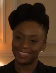 Chimamanda Ngozi Adichie (/ˌtʃɪməˈmɑːndə əŋˈɡoʊzi əˈdiːtʃi.eɪ/ ⓘ CHI-mə-MAHN-də əng-GOH-zee ə-DEE-chee-ay;[note 1] born 15 September 1977)[4][5] is a Nigerian writer whose works include novels, short stories and nonfiction.[6] She was described in The Times Literary Supplement as "the most prominent" of a "procession of critically acclaimed young anglophone authors" of Nigerian fiction who are attracting a wider audience,[7] particularly in her second home, the United States.