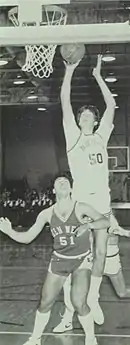Laettner attended the private Nichols School; although he received a financial aid package that paid a substantial part of his tuition, his family had to sacrifice to send him there, and he also did janitorial work at the school to defray some of the cost.[lower-alpha 2] During his career he scored over 2,000 points, breaking the school record set by teammate Ron Torgalski,[5] and the team won two state titles and reached another semifinal.[3] He was the second player from Western New York to reach 2,000 points, falling short of Curtis Aiken's total of 2,162 set five years earlier.[6] He was a much sought-after college recruit.[lower-alpha 3]