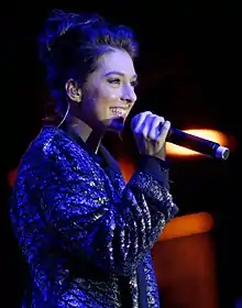 Grimmie auditioned for season 6 of NBC's singing competition, The Voice, as revealed on her Facebook page.[51] During the Blind Auditions, she performed Miley Cyrus' hit song "Wrecking Ball". All four coaches, Adam Levine, Usher, Shakira, and Blake Shelton, "turned their chairs" for her. She opted for Adam Levine after he told her that she had the potential to be a "huge star" due to her voice and stage presence.[52] Selena Gomez supported Grimmie during her audition,[53] and Justin Bieber, an artist Grimmie had frequently covered on YouTube, supported her during the finale.[54] She finished in 3rd place, behind winner Josh Kaufman and runner-up Jake Worthington.[55] Host Carson Daly later said he was "shocked" Grimmie did not win.[56] All of Grimmie's performances were released on iTunes and Spotify as studio versions.[57][58]