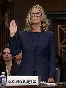 In September 2018, Ford alleged that then-U.S. Supreme Court nominee Brett Kavanaugh sexually assaulted her in Bethesda, Maryland, when they were teenagers in the summer of 1982.[8] She testified about her allegations during a Senate Judiciary Committee hearing regarding Kavanaugh's Supreme Court nomination later that month.[9]