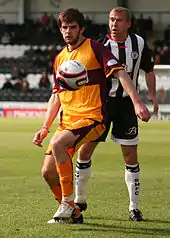 On 2 February 2009 Sheridan signed for Motherwell on loan until the end of the season, to replace Chris Porter, who had signed for Derby County the previous day.[14] He made his debut five days later, coming on as a second-half substitute in a 1–1 draw with St Mirren in the Scottish Cup.[15] He made his first start and league debut a week later on Valentine's Day in Motherwell's 1–0 win over Hamilton, playing the entire 90 minutes as his strike partner David Clarkson scored the only goal of the game.[16] Sheridan scored his first league goal for The Well a fortnight later, the winner in a 2–1 victory at Inverness.[17][18] His only other goal for Motherwell came near the end of the season in a 3–0 win over Hamilton.[17]